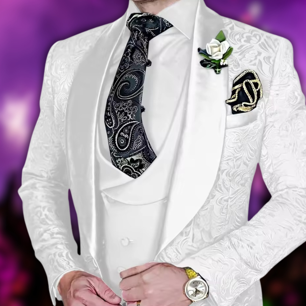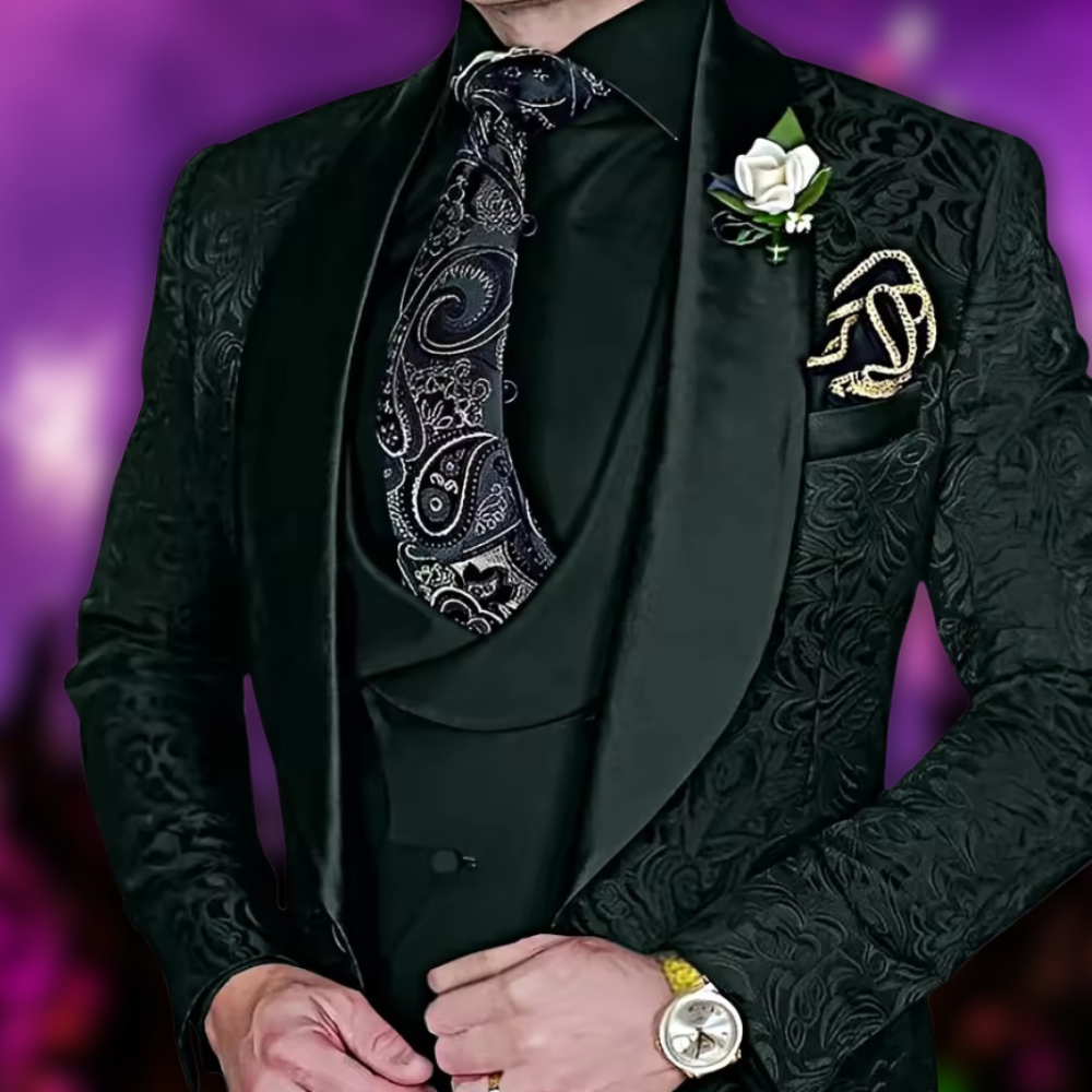 Herre Skræddersyet 3-Delt Jacquard-Sæt - Sator