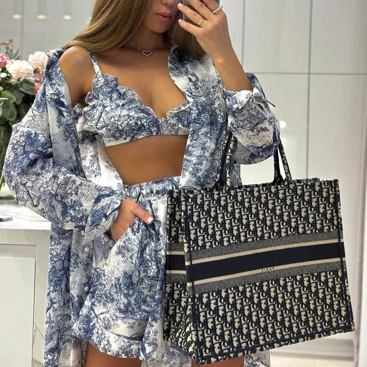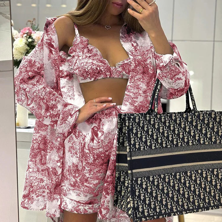 Tredelt Sæt Trykt Sommerforår til Kkvinder - Charia