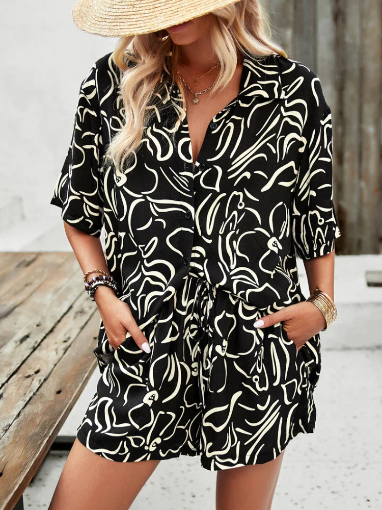 Uanset om det er parret med sandaler til en gåtur på stranden eller sneakers til et afslappet bylook, kombinerer dette sæt sæsonbestemt charme med ubesværet alsidighed.