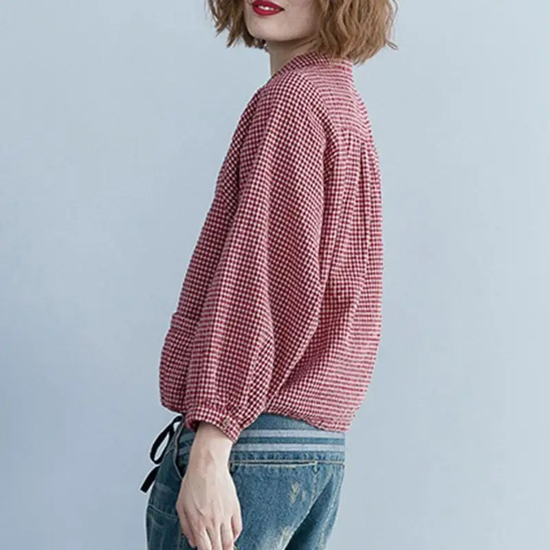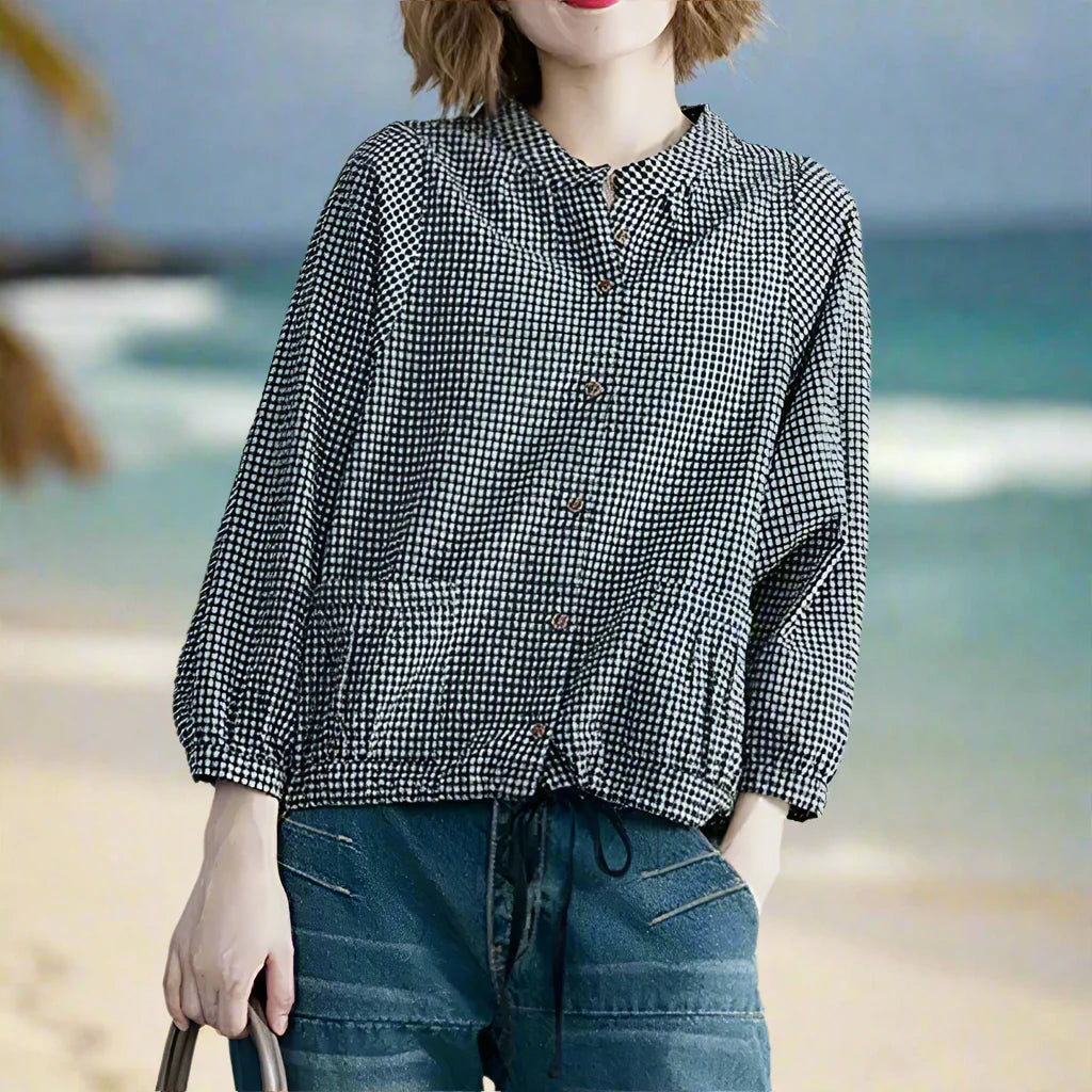 Blød Ternet Bluse i Bomuldshør - Ashana