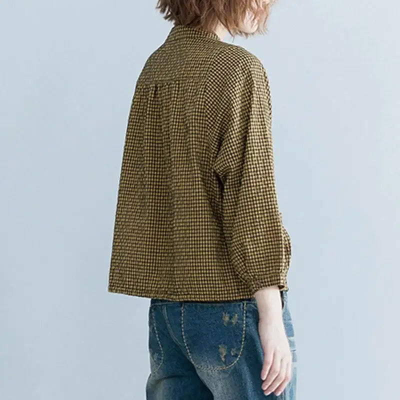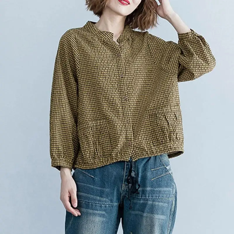 Opfrisk din sæsonbetonede garderobe med Ashana blusen. Den stand-up krave og løse pasform giver den et tidløst vintage look, mens det ternede mønster tilføjer klassisk charme.