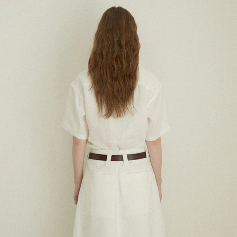 Kortærmet Bluse i Rent Hør med V-udskæring - Deanna