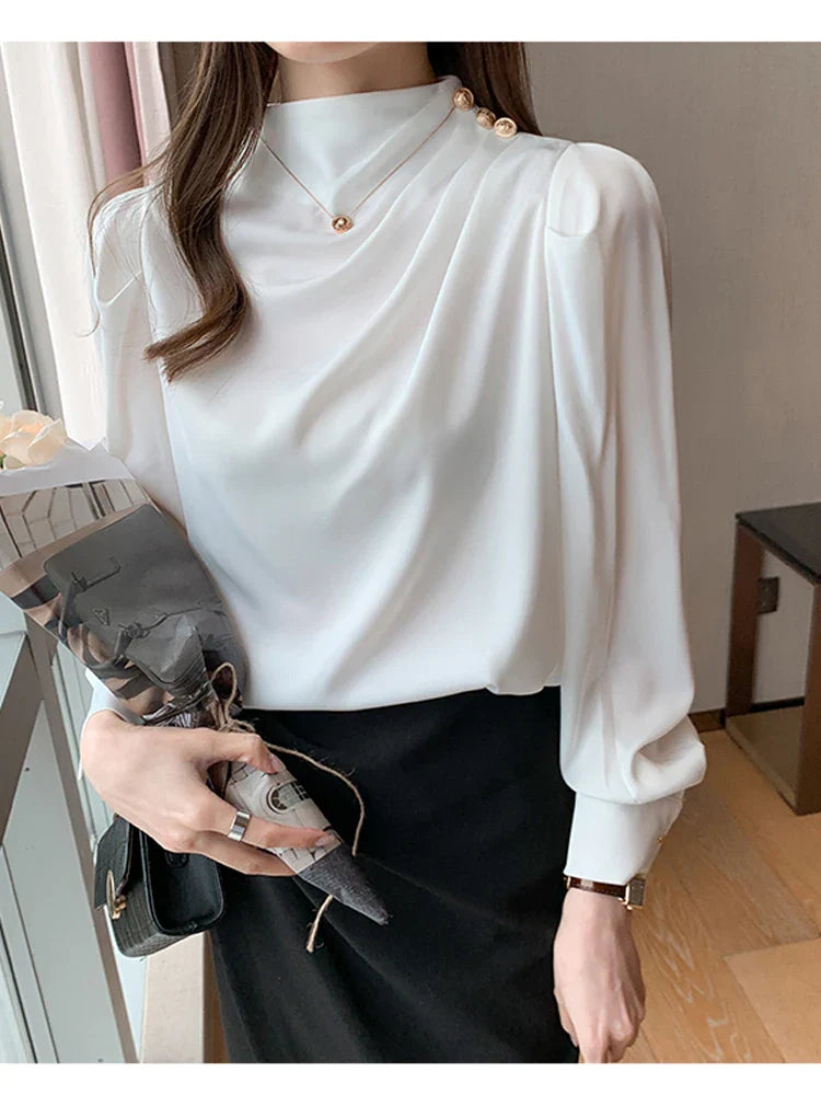 Satinbluse til Kvinder - Lange Pufærmer til Forretning og Aften | Model - Flavua