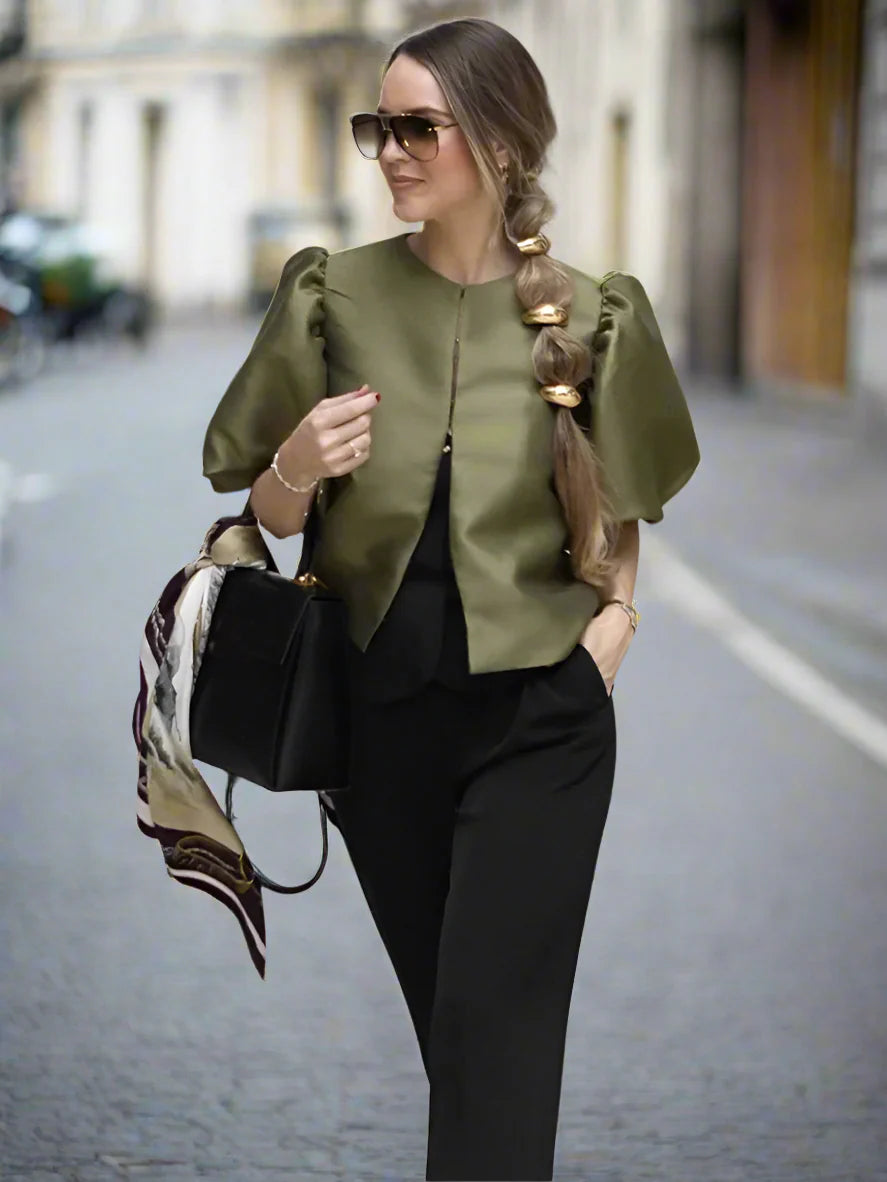 Afslappet Satinbluse med Pufærmer til Kvinder - Gellaz