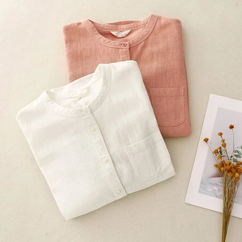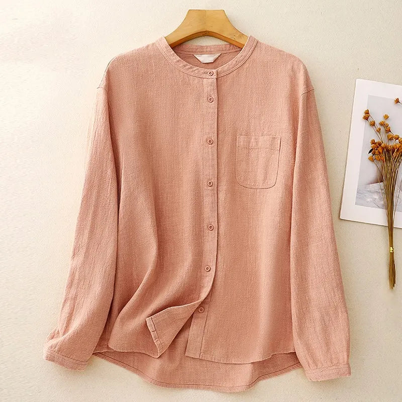 Pak dig ind i naturens blide strejf med vores Keatha bluse. Denne lette langærmede skjorte lavet af en åndbar bomuld-hør-blanding er ideel til lag på forårsmorgen og lune sommeraftener.