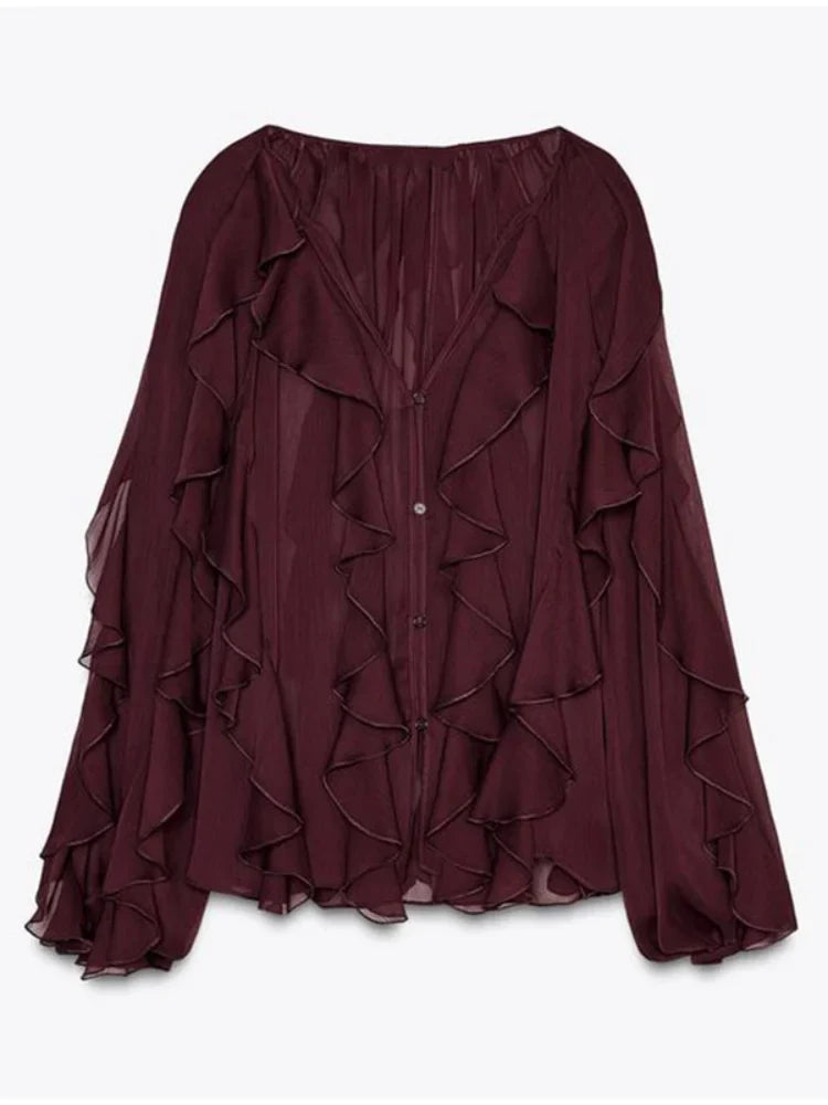 Overdimensioneret Flæse Forårsbluse til Kvinder - Sidnay