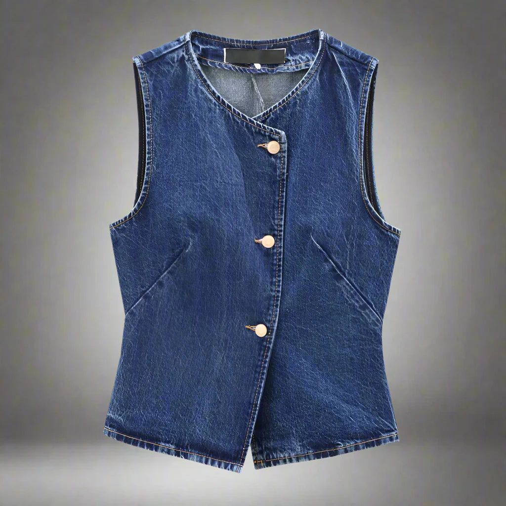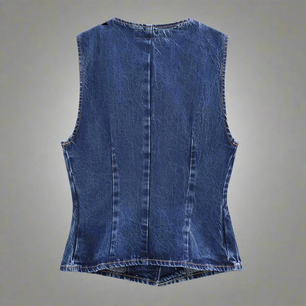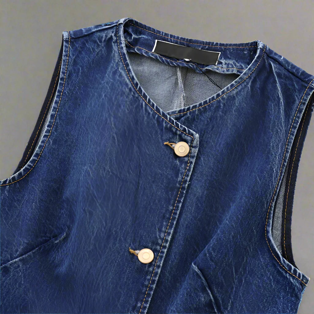 Stilfuld denimjakke uden ærmer til kvinder - Jadrie