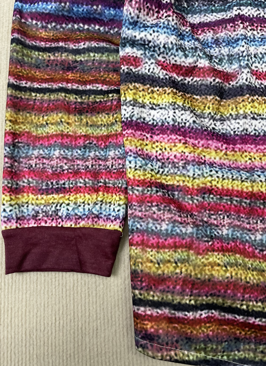Den bløde, åndbare kvalitet sikrer, at du holder dig varm og behagelig, mens det unikke tryk tilføjer et strejf af personlighed. Passer til både afslappede hverdagslooks og sporty outfits, hvilket gør den til en alsidig tilføjelse til din garderobe.