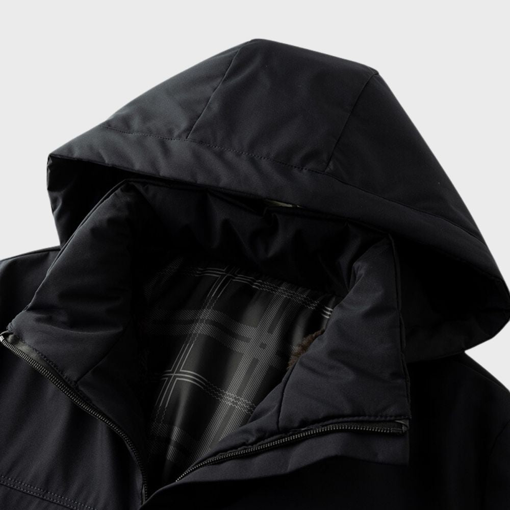 Vores tykke og vandtætte vinterjakke er designet til at beskytte dig mod selv de mest barske vinterforhold. Jakken er fremstillet af vandtætte materialer og har en solid isolering, der sikrer, at du forbliver varm og tør, uanset om du står over for regn, sne eller kraftig blæst.