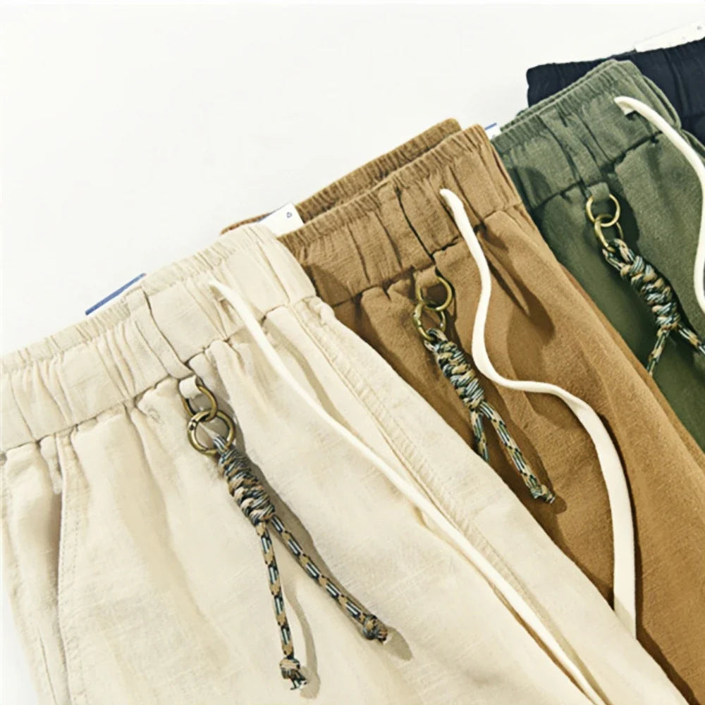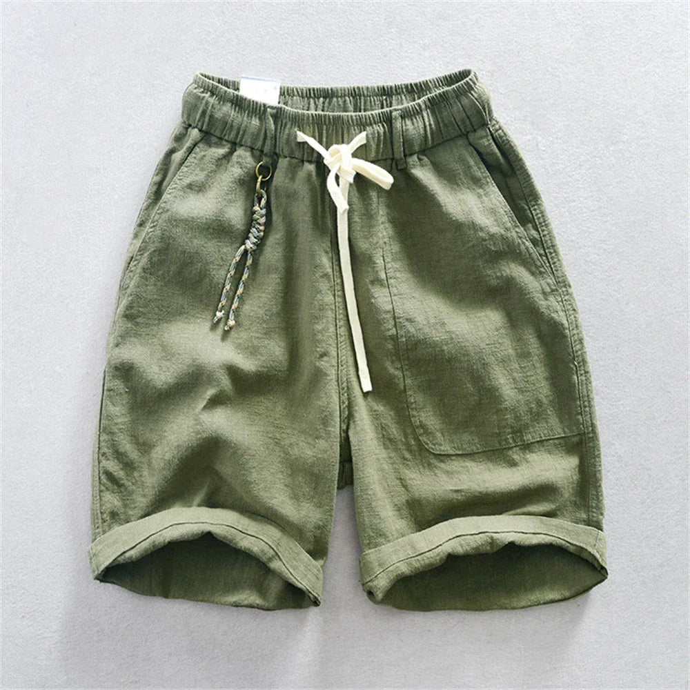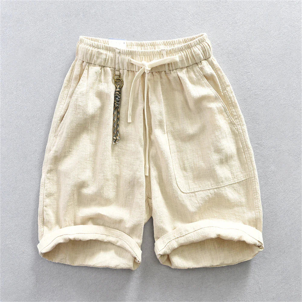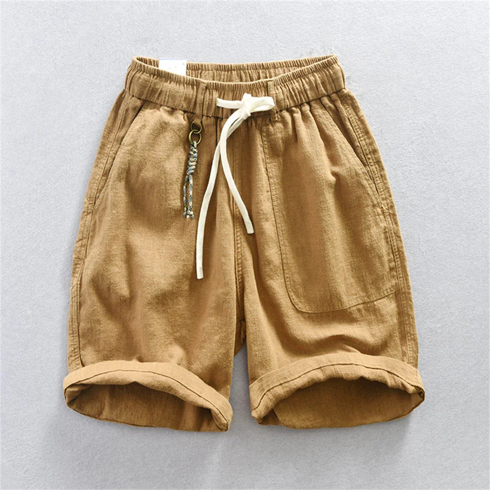 2025-linnedshortsene til mænd tilbyder letvægtsåndbarhed og en afslappet stil, velegnet til forår og sommer. Disse cargo-shorts har rummelige lommer og en afslappet pasform, der er velegnet til arbejde, afslappede eller stranddage.