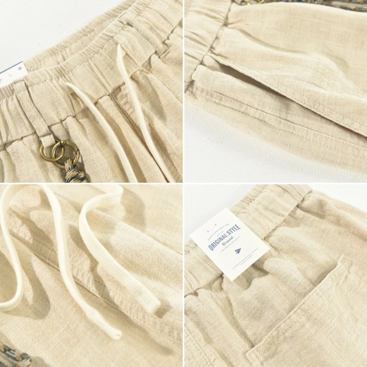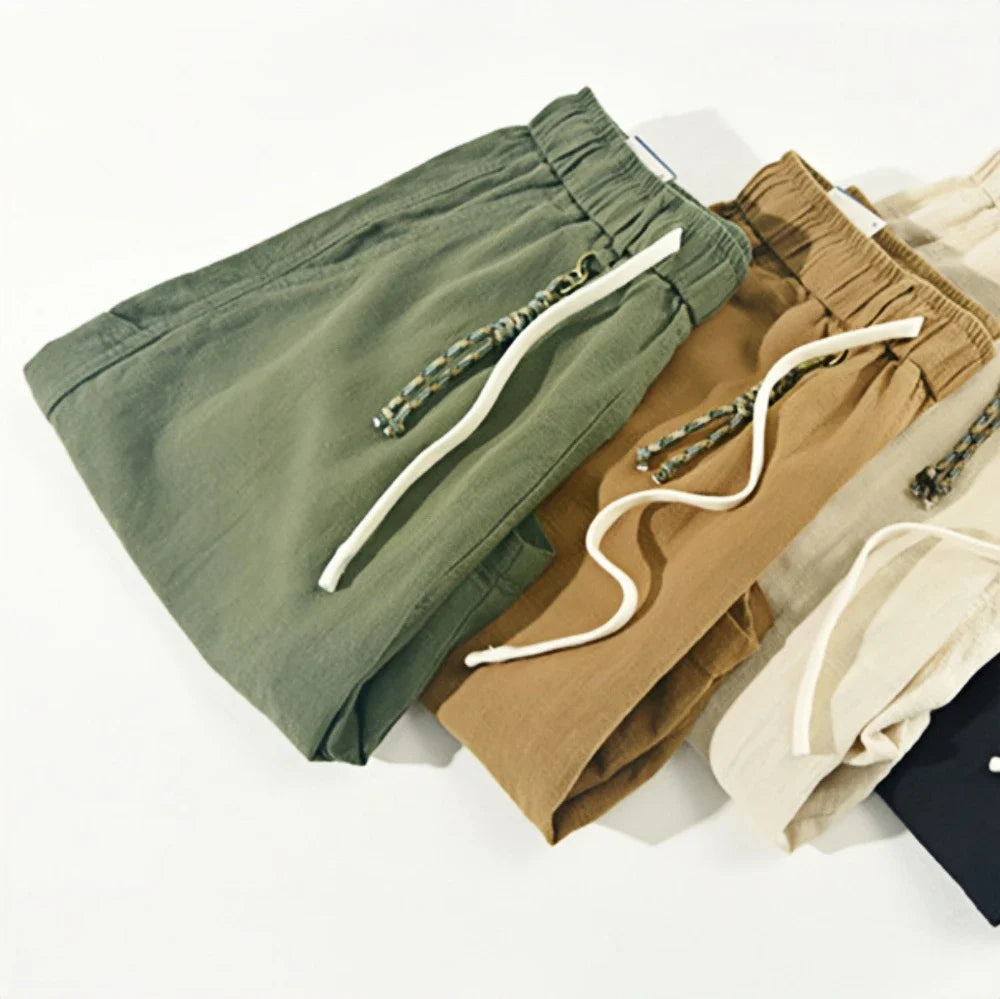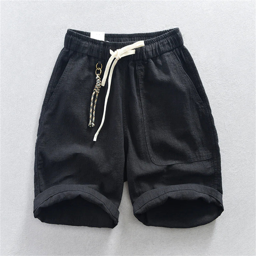 2025-linnedshortsene til mænd tilbyder letvægtsåndbarhed og en afslappet stil, velegnet til forår og sommer. Disse cargo-shorts har rummelige lommer og en afslappet pasform, der er velegnet til arbejde, afslappede eller stranddage.
