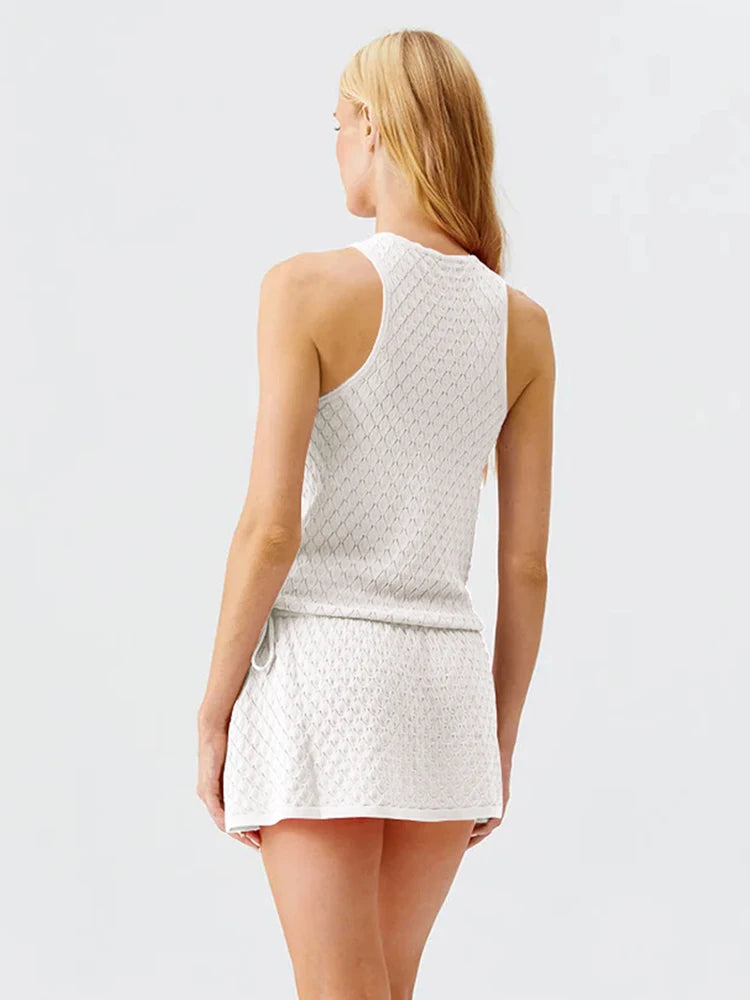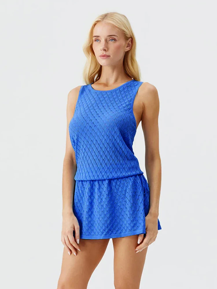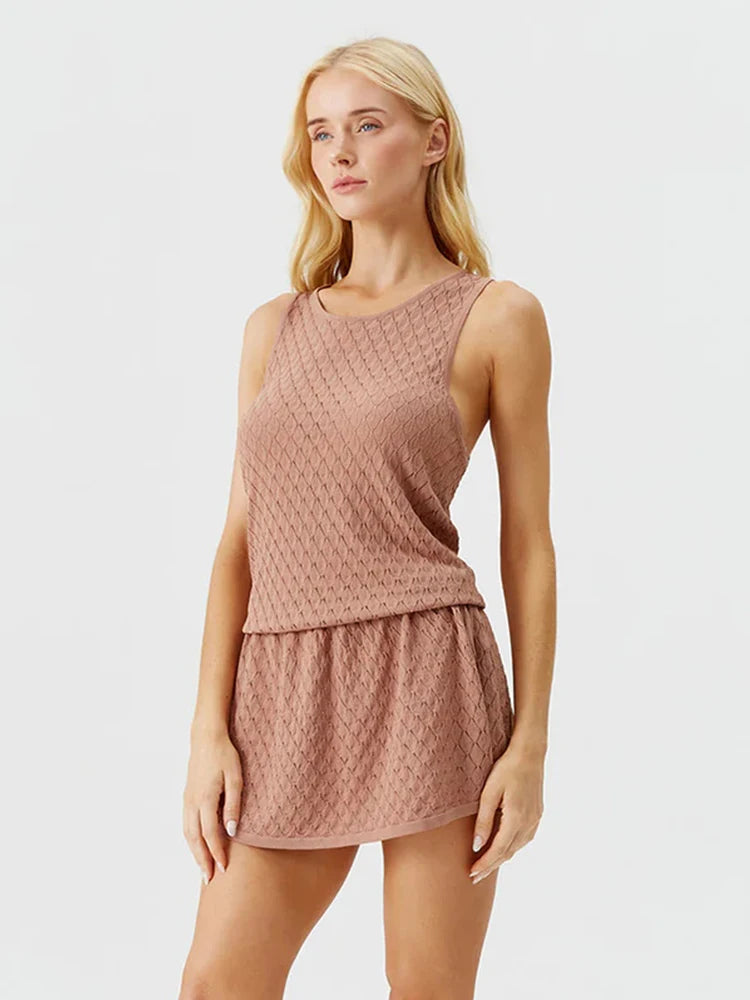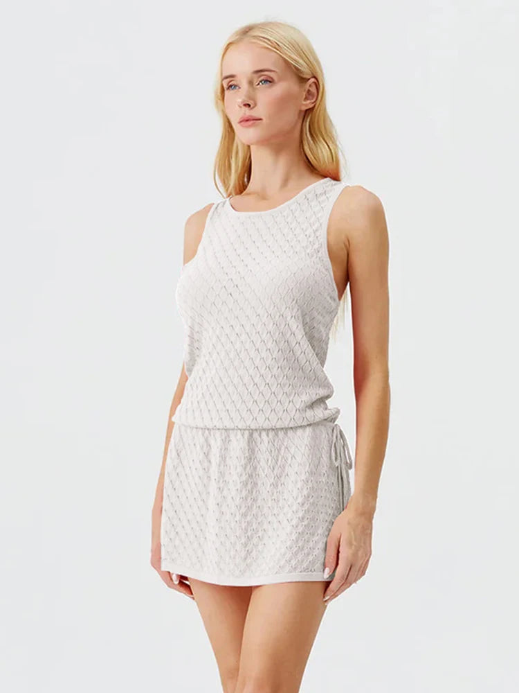 Denne strand minikjole med rund hals er det perfekte valg til varme sommerdage og afslappede strandture. Den lette og luftige pasform giver maksimal komfort, mens det enkle design med rund hals fremhæver en naturlig og ubesværet stil.