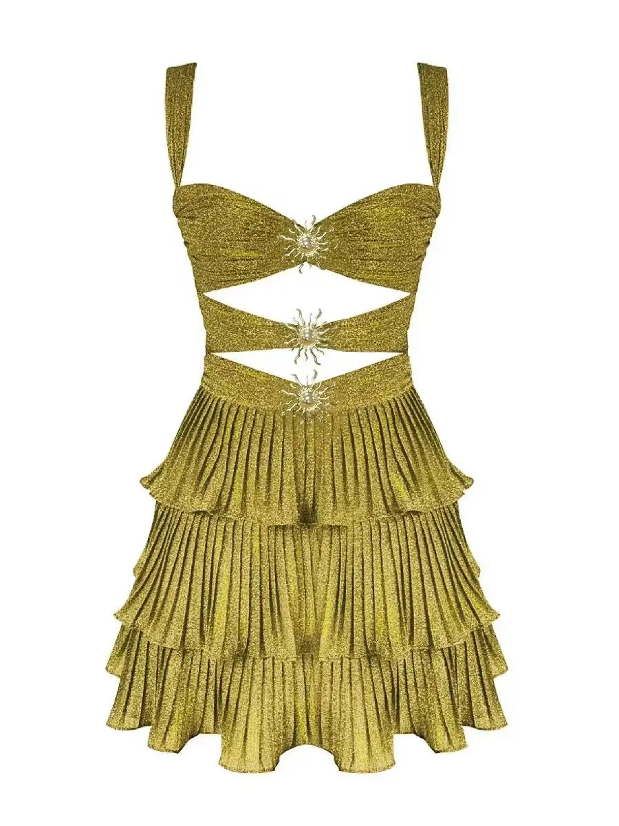 Denne elegante havfrue-minikjole er lavet af glat satinmateriale og har en højtaljet A-linje silhuet, der smigrer figuren. Halterudskæringen og det ærmeløse design giver en moderne, luftig følelse, mens bandageudskæringerne tilføjer et strejf af elegance.