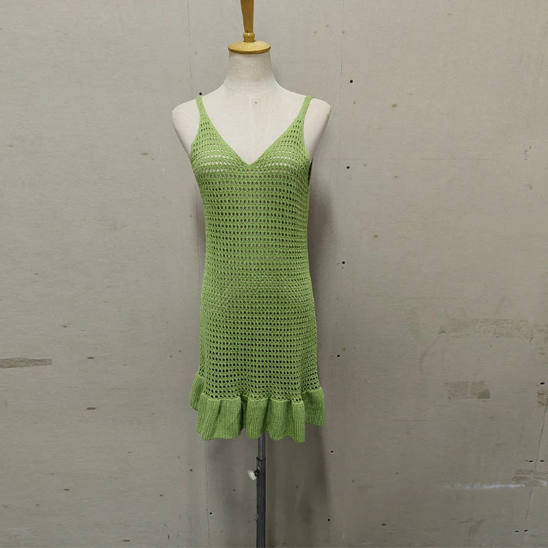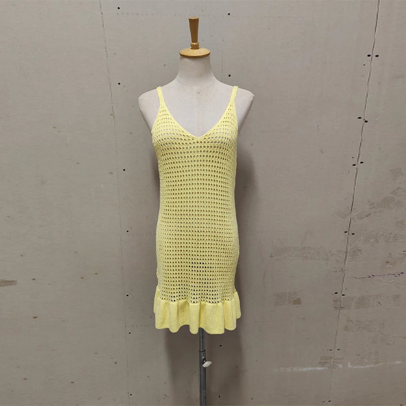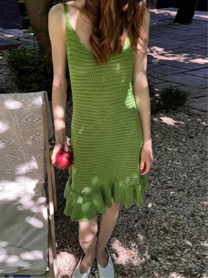 Trendy Strikkjole med gennembrudt mønster – Ærmeløs & Perfekt til Sommer