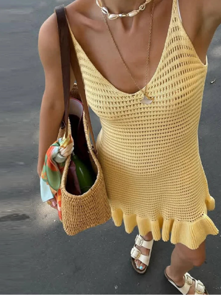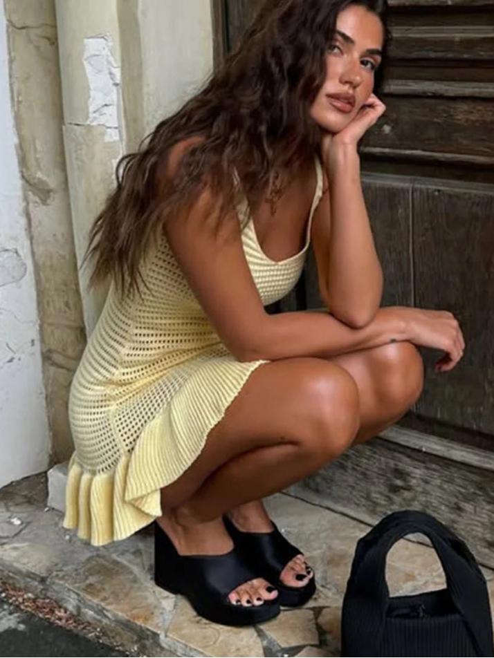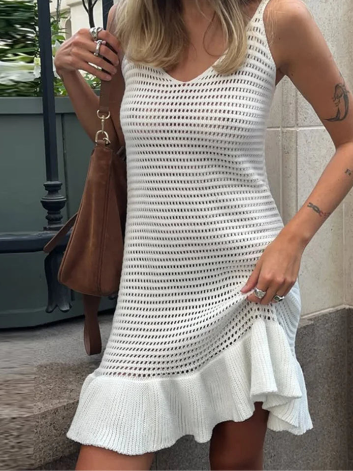 Denne fashionable strikkede kjole kombinerer stil, komfort og lethed – perfekt til enhver kvinde, der elsker en moderne & luftig sommerstil. Det hollow out-design giver et sensuelt look og tilføjer en unik elegance til dit outfit.