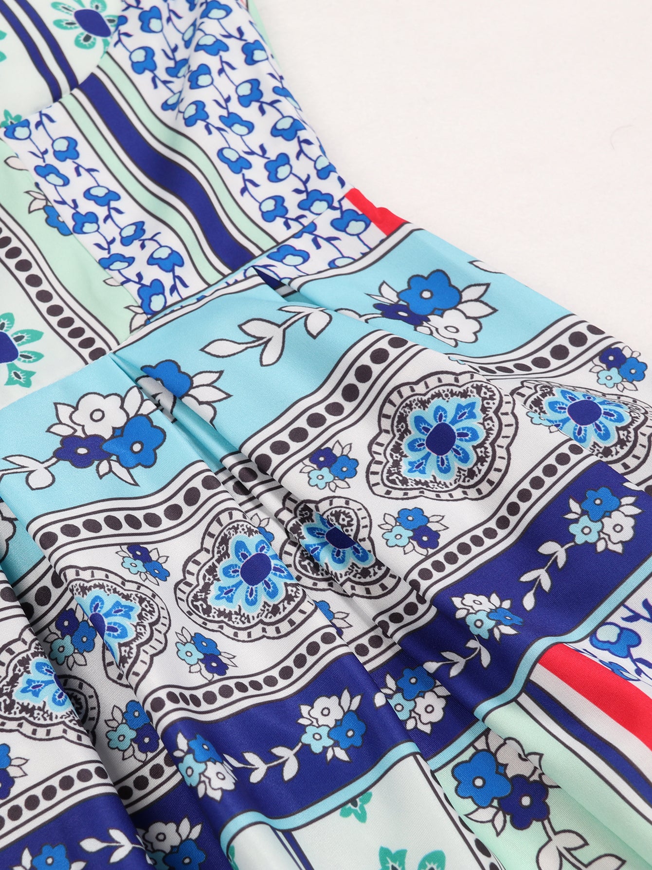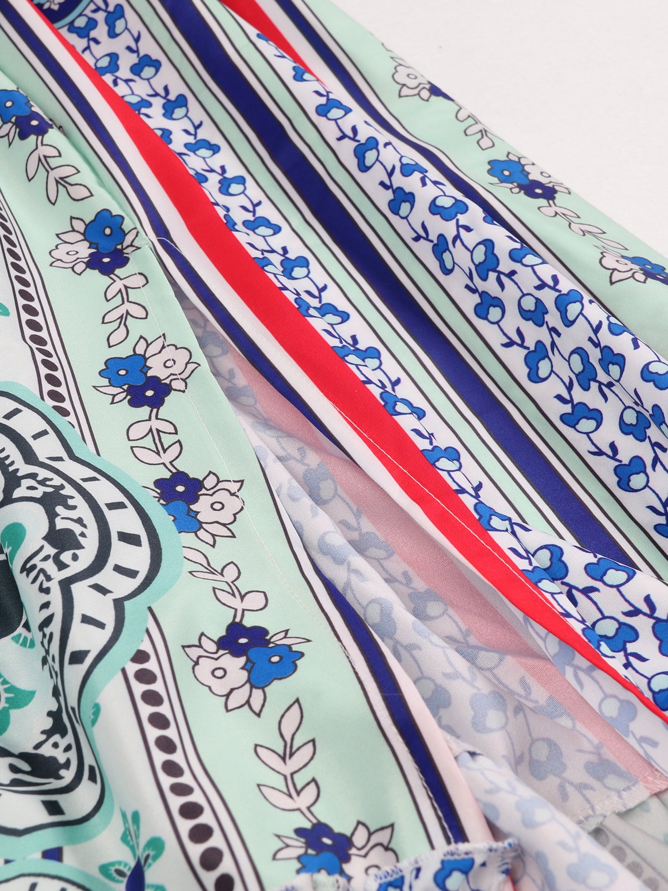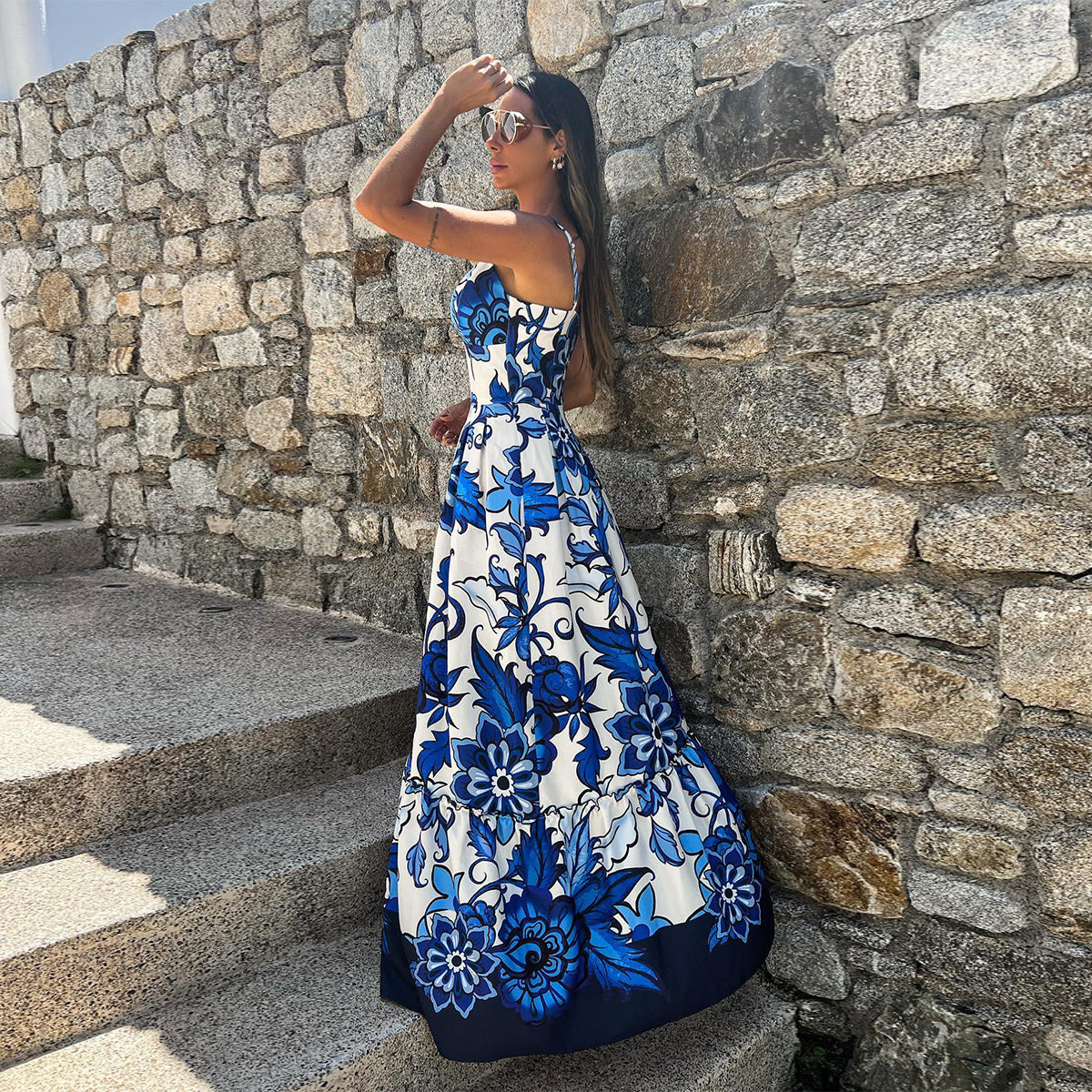Lang ærmeløs kjole i livlige farver med høj slids - Sommerlook - Jervania