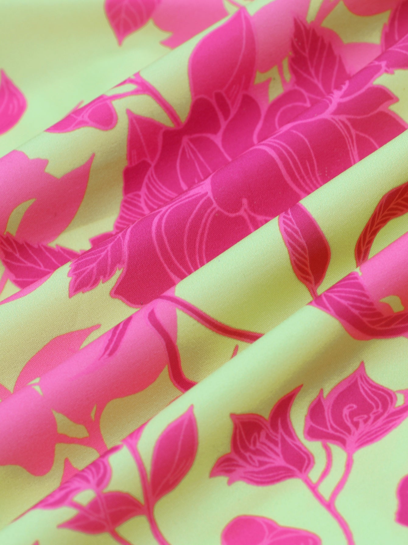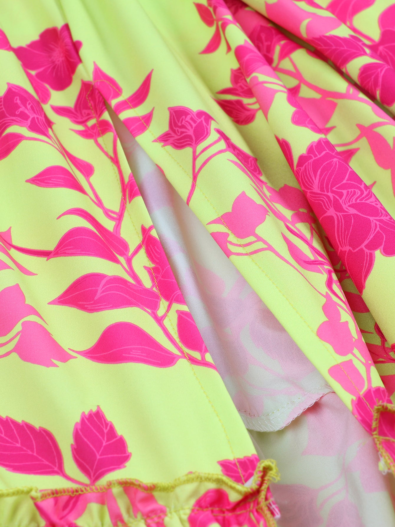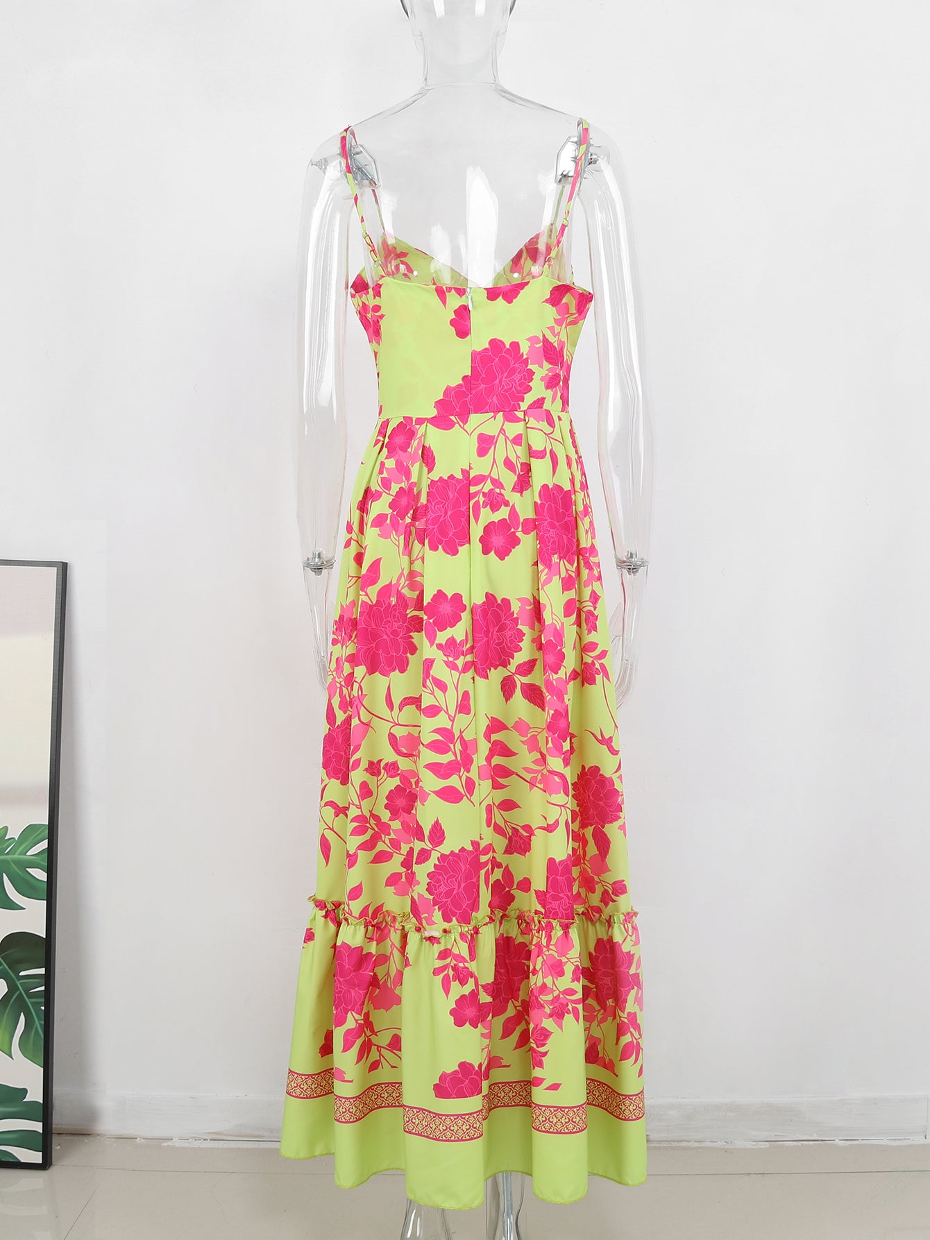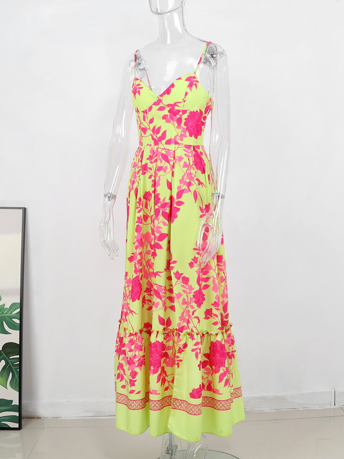 Denne kjole er skabt til at fange opmærksomheden med sine levende nuancer og elegante silhuet. Det ærmeløse design fremhæver skuldrene, mens den høje slids tilføjer en strejf af sensualitet og bevægelse. Et stilfuldt valg til sommerens fester, ferier eller spontane udflugter i byen.