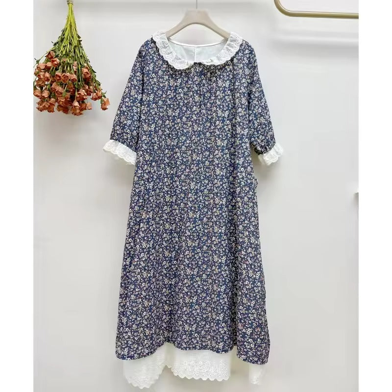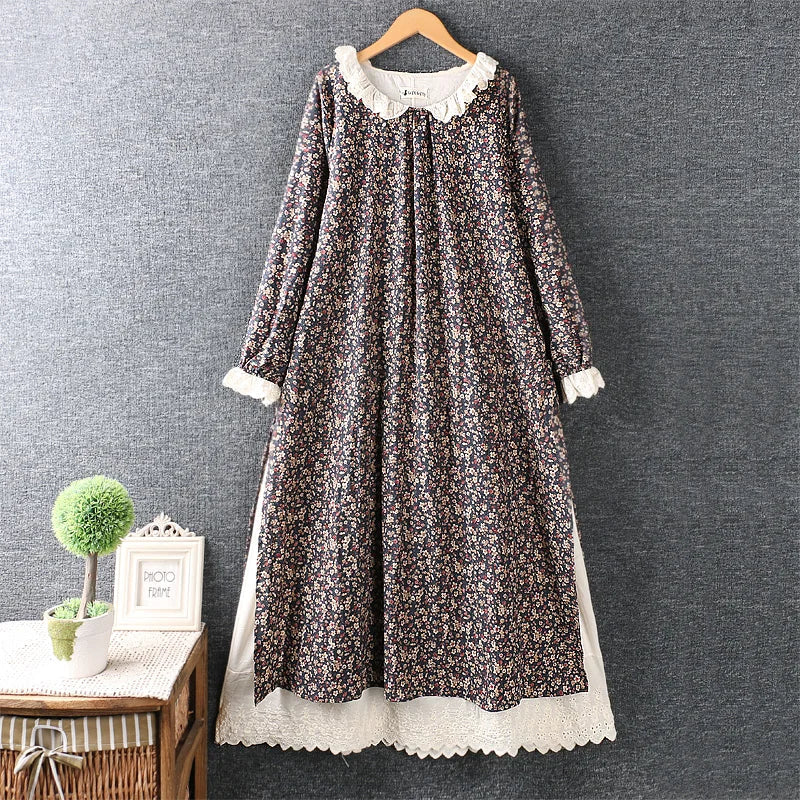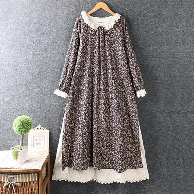 Broderet Forårs Midikjole i Bomuld-Hør - Kaylia
