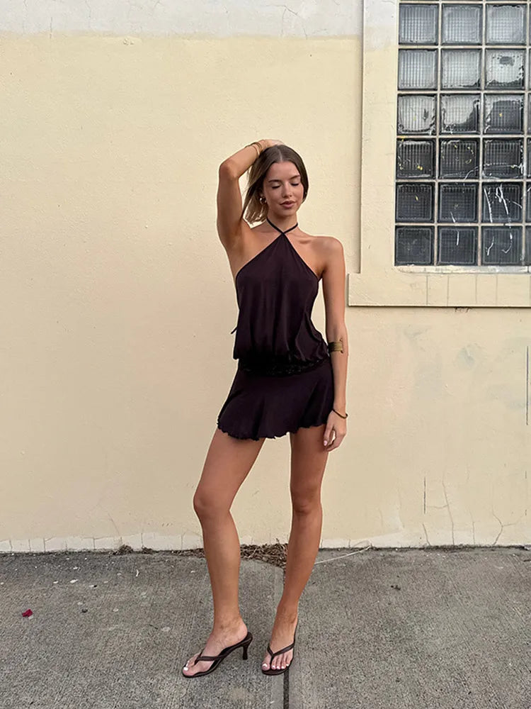 Den bløde og lette pasform gør kjolen ideel til både hverdagsbrug, dates og festlige lejligheder. De fine flæser tilfører en luftig lethed, mens den brune nuance skaber en varm og stilfuld æstetik.