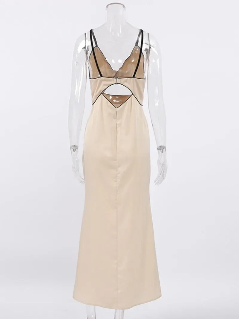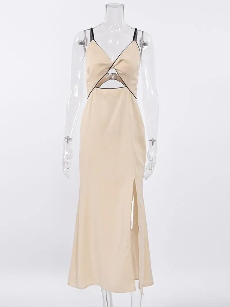 Lang Kjole med Tynde Stropper og V-Udskæring - Thaia