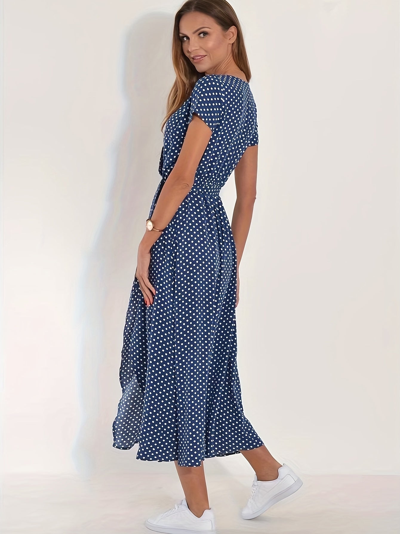 ✔️ Alsidig appel: V-udskæringen og de korte ærmer gør denne kjole perfekt til både afslappede og smarte lejligheder.