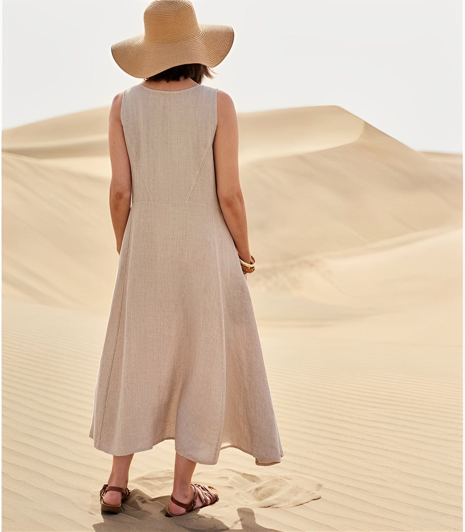 Arina -kollektionskjolen er en ærmeløs maxikjole med et strejf af vintage-design. Den er lavet med åndbarhed, komfort og mode i tankerne. Det unikke design vil med garanti få dig til at stråle på dine rejser. Den er også lavet af 100 % materialer af høj kvalitet, der garanterer holdbarhed og slidstyrke.