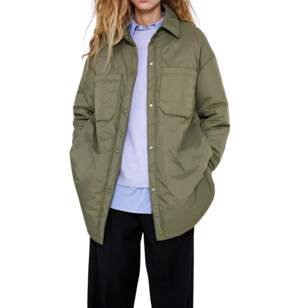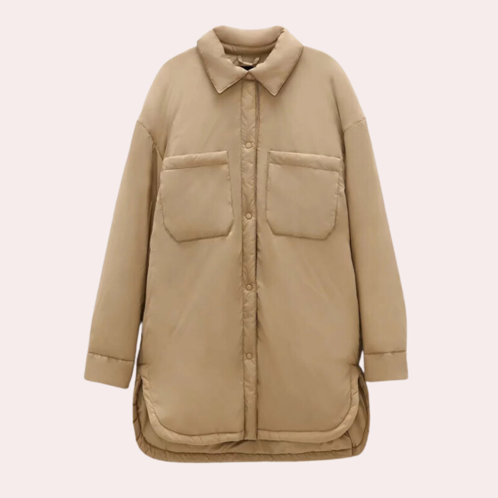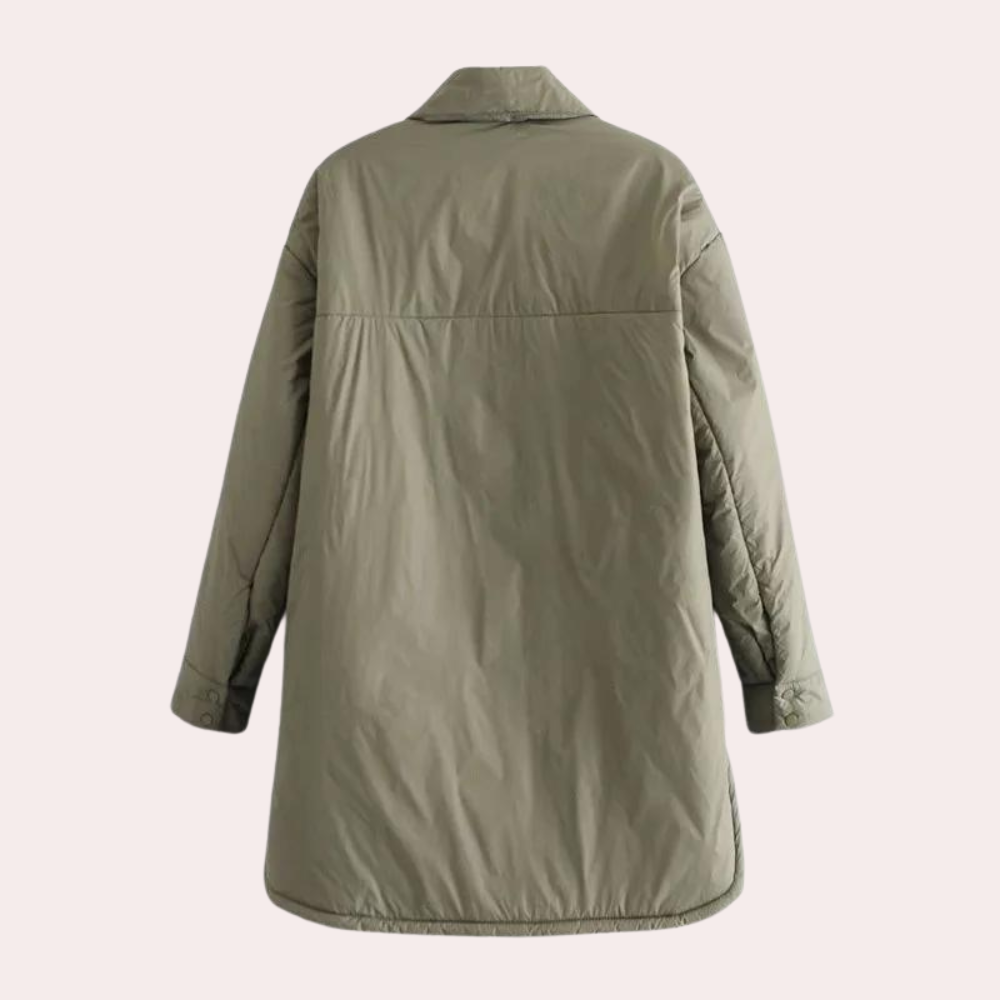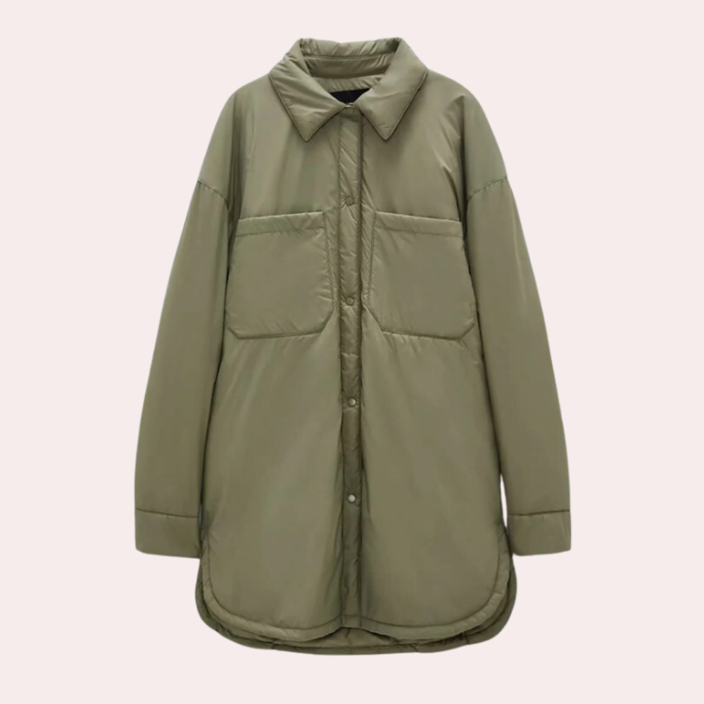 Denne varme og moderigtige damejakke er det ideelle valg til de kolde vintermåneder. Fremstillet af isolerende materialer, holder den dig varm uden at gå på kompromis med stilen. Jakken har et moderne design, der kan kombineres med både casual og mere formelle outfits, hvilket gør den alsidig til enhver lejlighed.