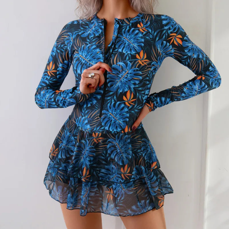Langærmet badedragt til kvinder med flæse Nederdel stil - Sommer - Pelaga
