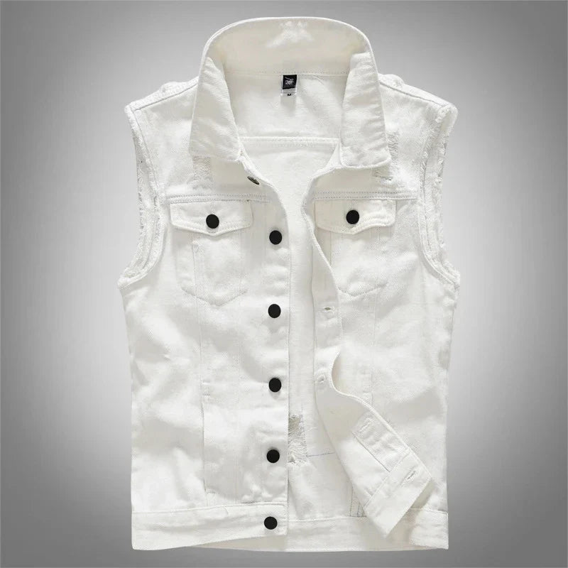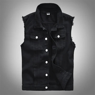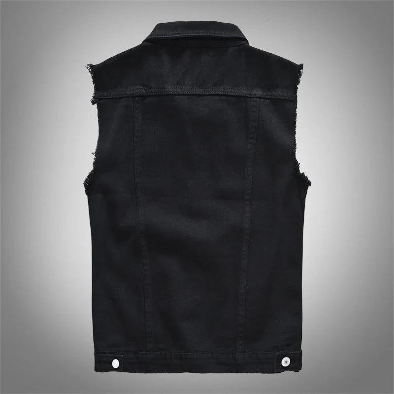 Rippet ærmeløs denimjakke til mænd - Sorn